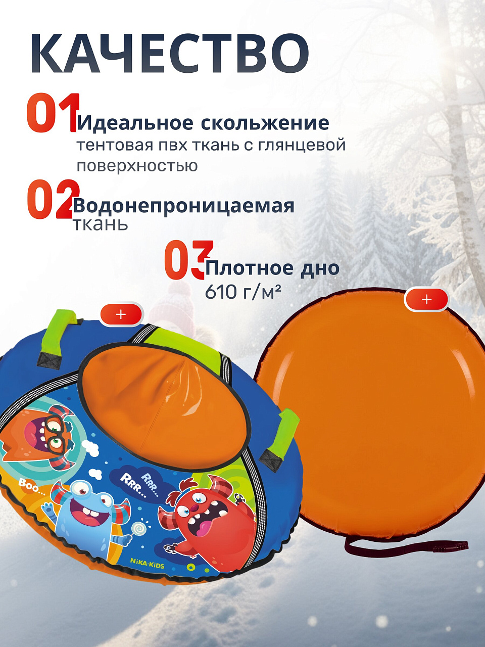Санки-ватрушка Nika подойдут для зимних развлечений на даче, в городе или в подарок.