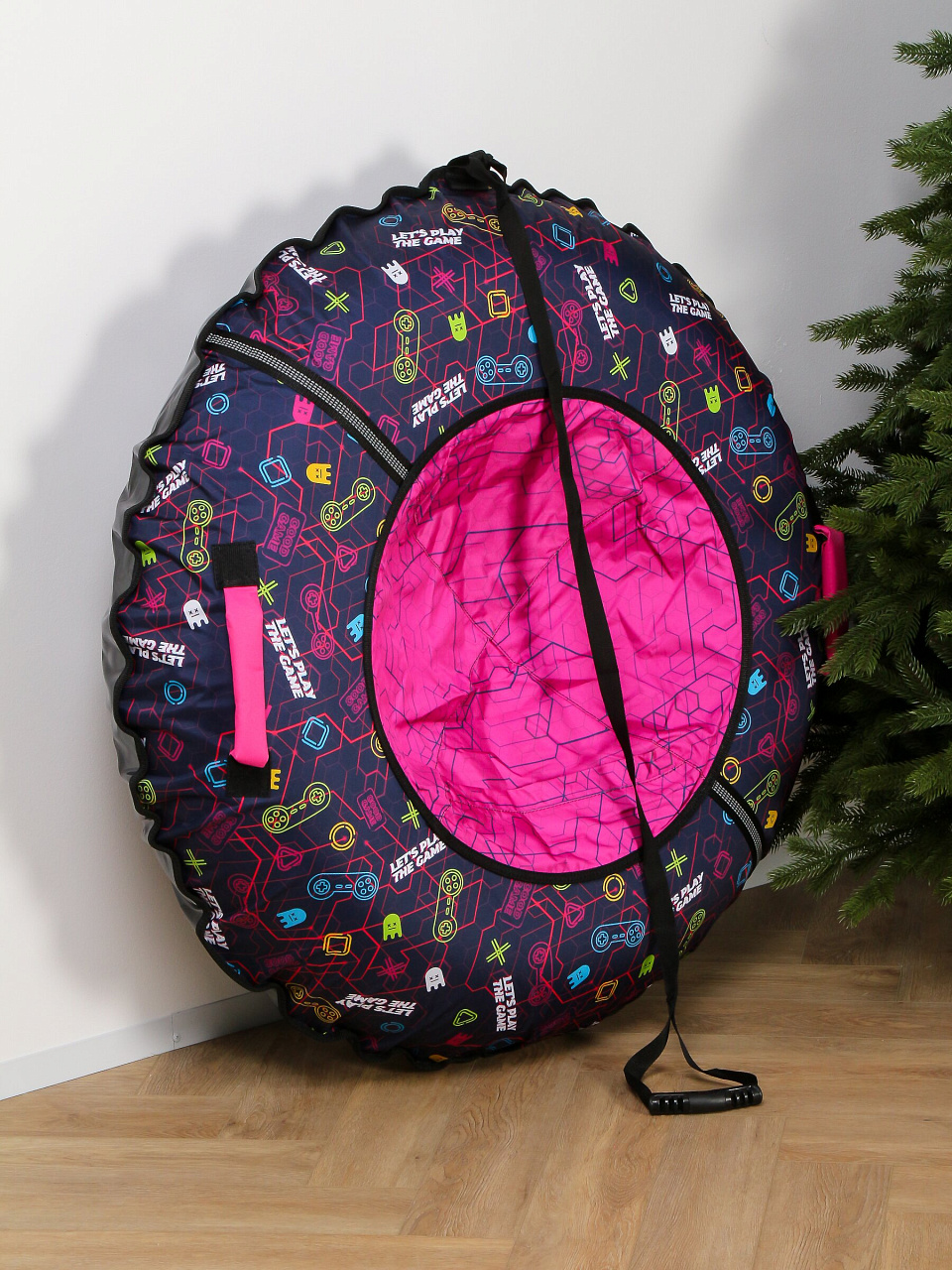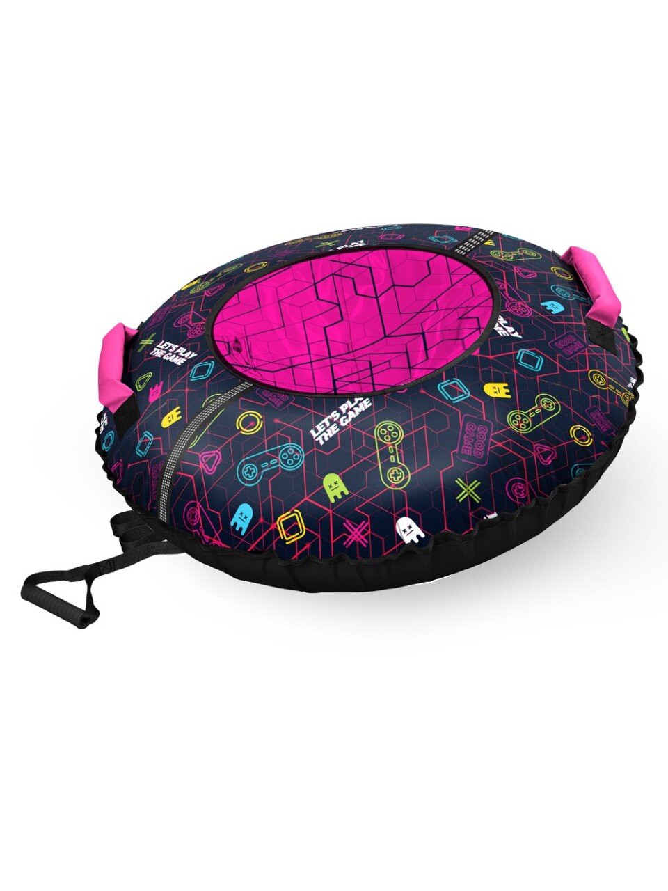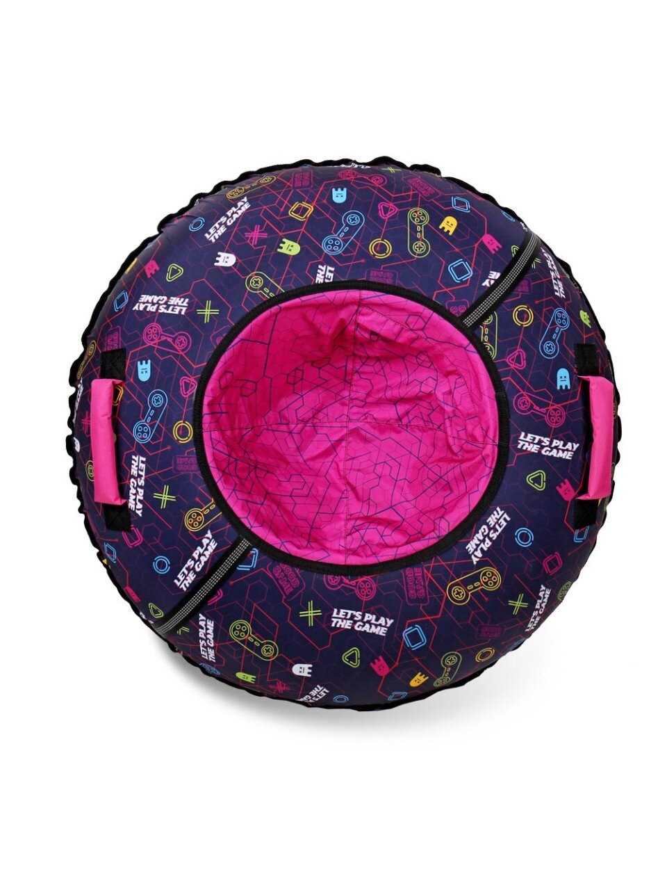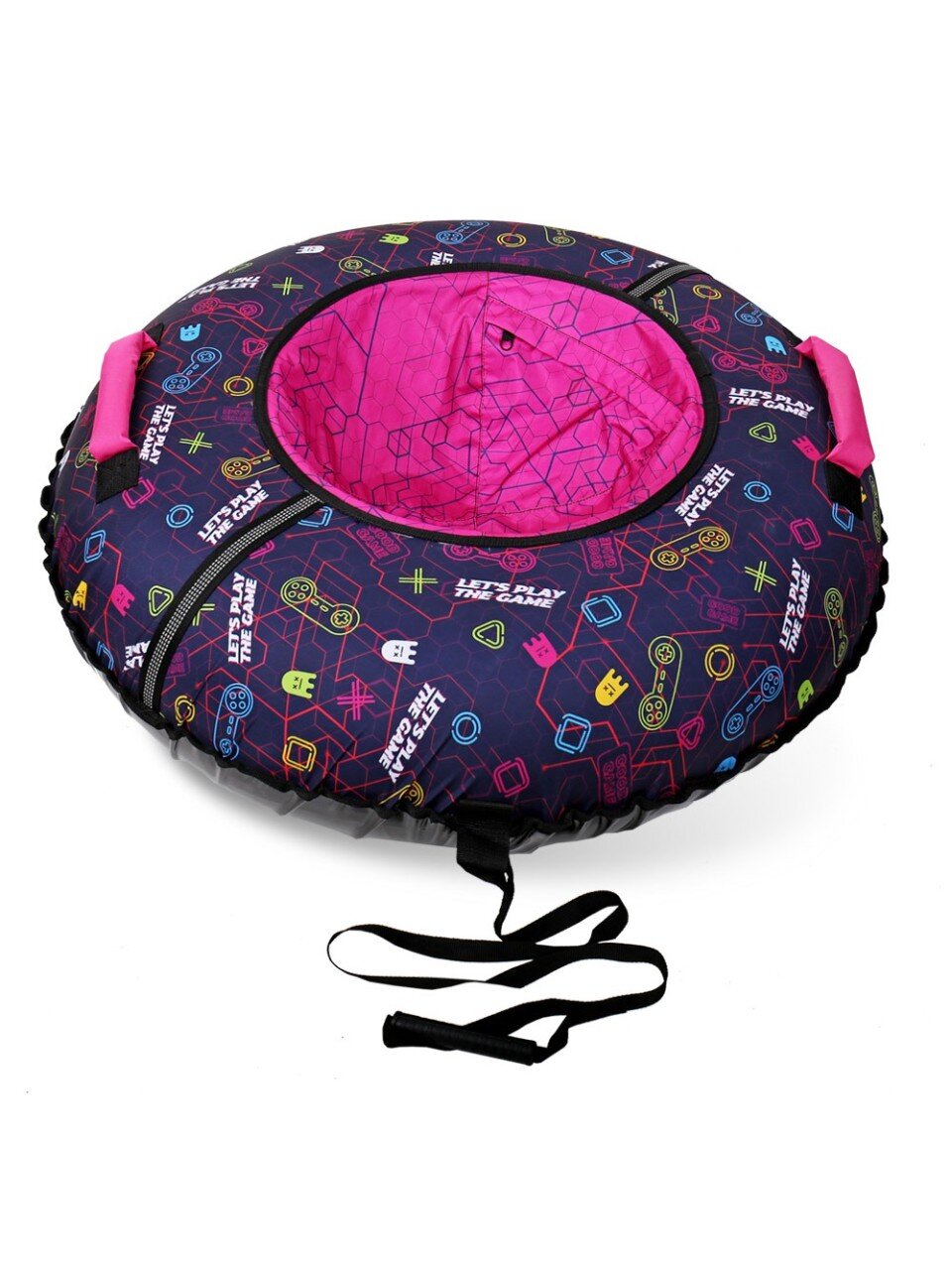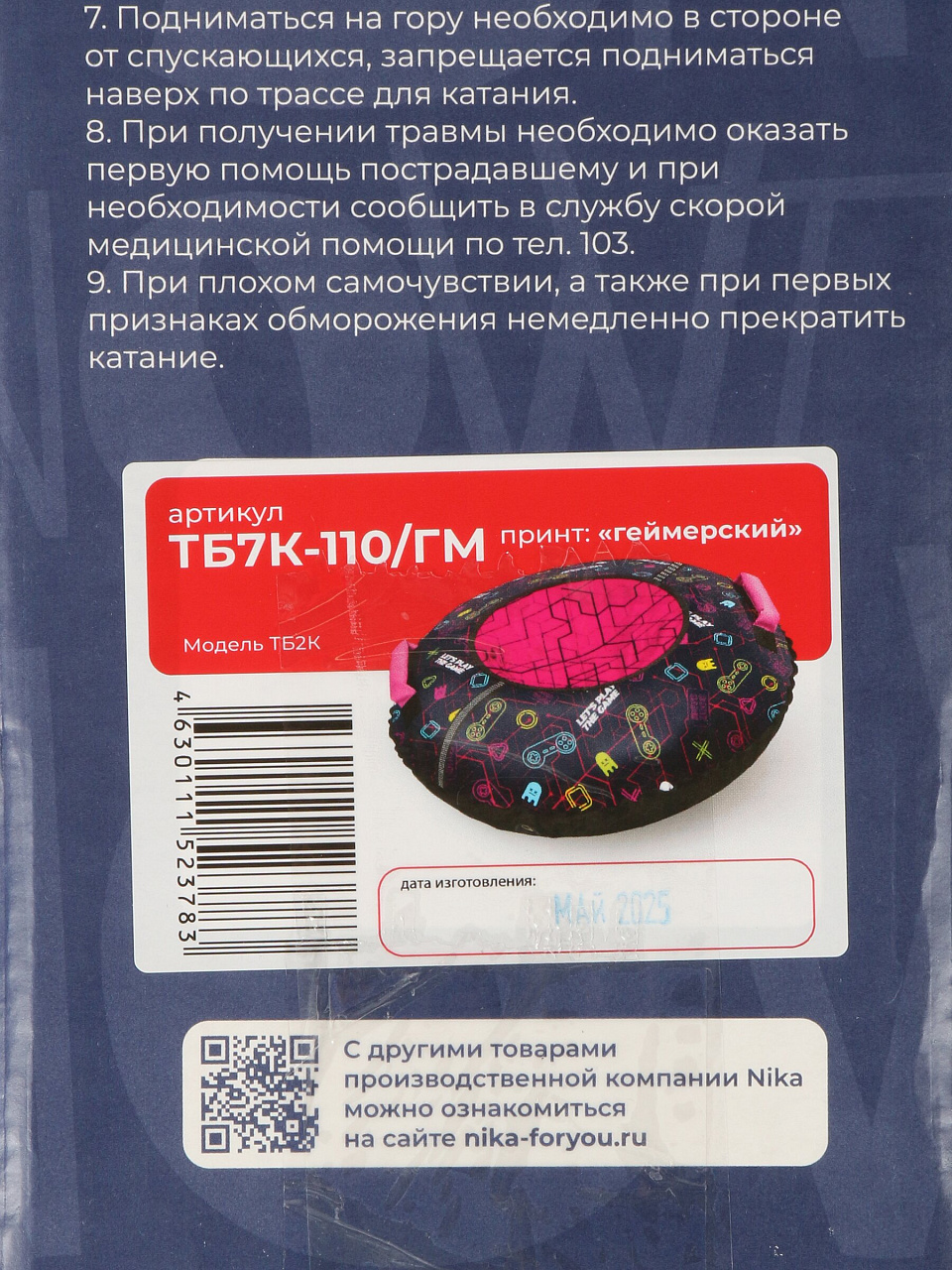 Санки-ватрушка Nika 110 см с буксировочным тросом и геймерским принтом — безопасный и яркий зимний отдых для подростков от 12 лет. Большой диаметр, прочные материалы, удобные ручки.