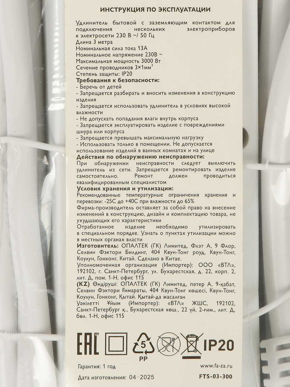 Вы можете приобрести «Удлинитель бытовой 3 гнезда, 3 м, ПВС, 3х1 мм², с заземлением, 13 А, выключатель, пластик, белый, ФАZА, FTS-03-300, 5053038» и другие товары в нашем интернет-магазине в Борисоглебске по низким ценам и с бесплатным самовывозом.