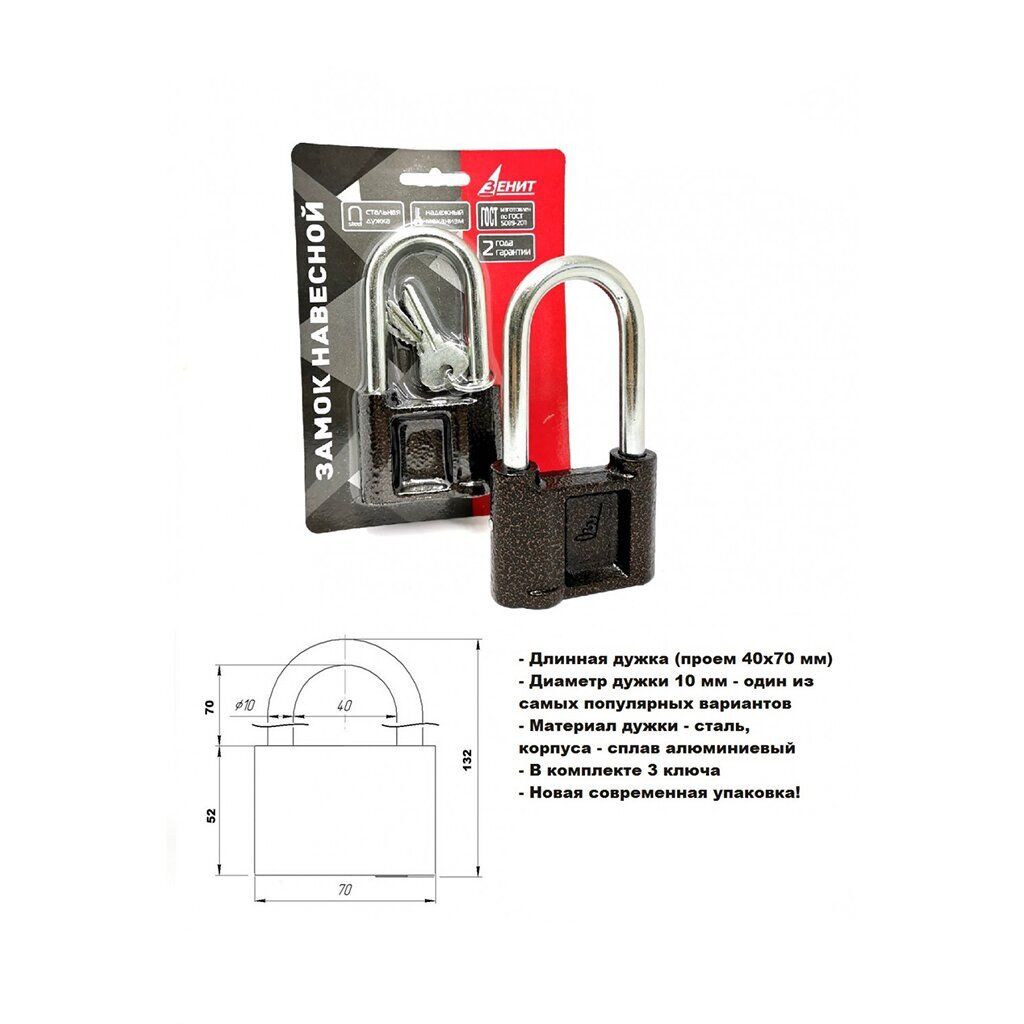 Вы можете приобрести «Замок навесной Зенит, ВС1.02-01, БП-00011489, блистер, цилиндровый, бронза, 70 мм, 3 ключа» и другие товары в нашем интернет-магазине в Обнинске по низким ценам и с бесплатным самовывозом.