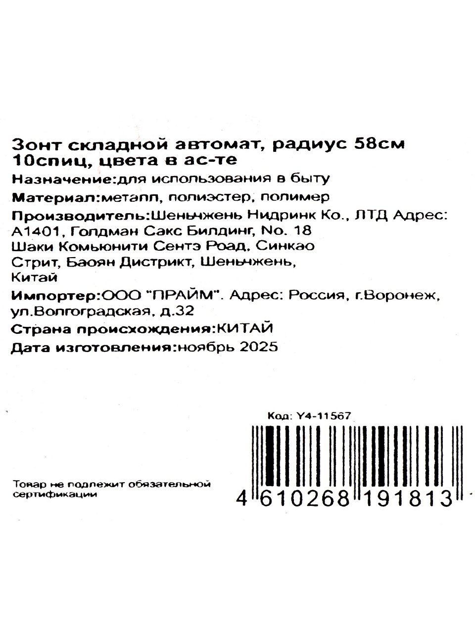 Многие спрашивают, какой зонт выбрать для повседневного использования и чем отличается автомат от полуавтомата. Модель Y4-11567 выигрывает за счет прочности (10 спиц против стандартных 8), а автоматический механизм экономит время и силы. Подходит ли этот зонт для подарка? Да, благодаря универсальному дизайну и выбору расцветок, он станет уместным презентом для любого возраста и пола. В отличие от аналогов с меньшим куполом, этот зонт надежно защищает плечи и верхнюю часть одежды от промокания.