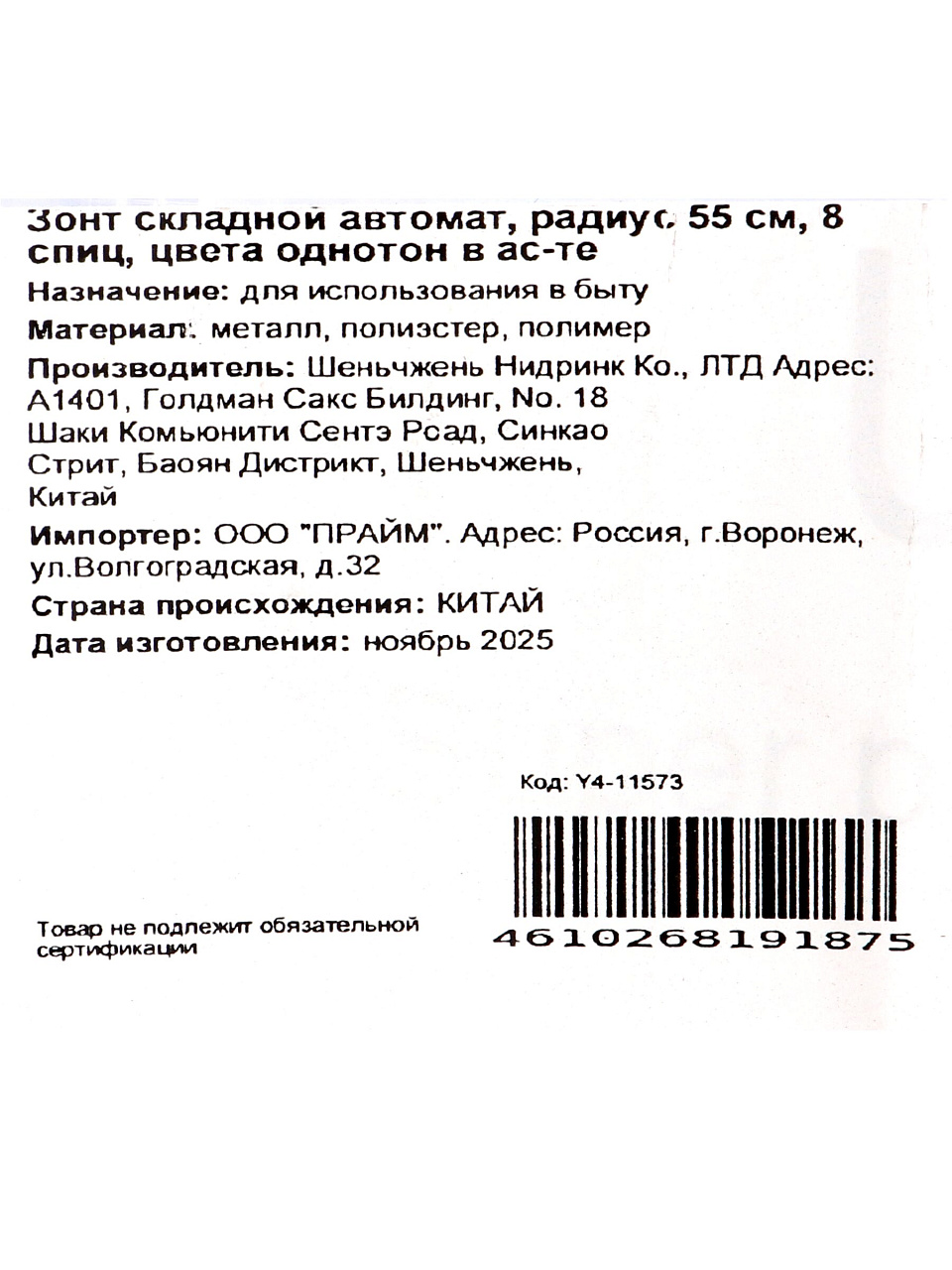 Вы можете приобрести «Зонт складной автомат, 8 спиц, 55 см, цвета однотон, в ассортименте, Y4-11573» и другие товары в нашем интернет-магазине в Тамбове по низким ценам и с бесплатным самовывозом.